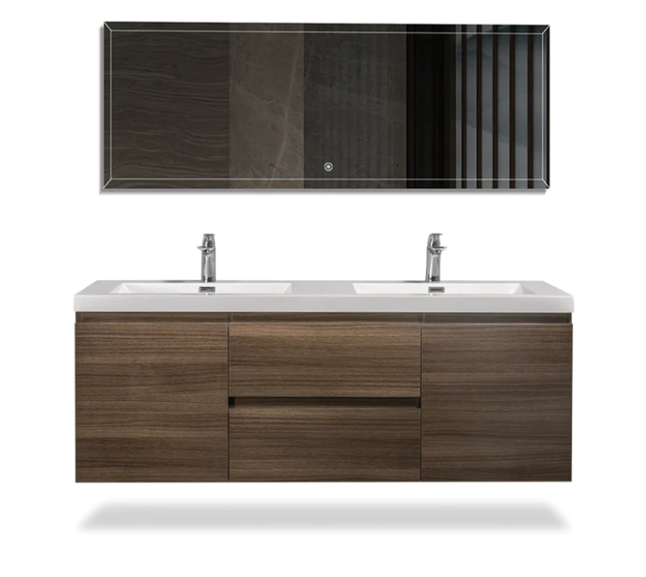 Bergamo-Floating Bathroom Vanity Wall Hung Vanity Unit With Faux Marble Integrated Top&Sink – 60 In
