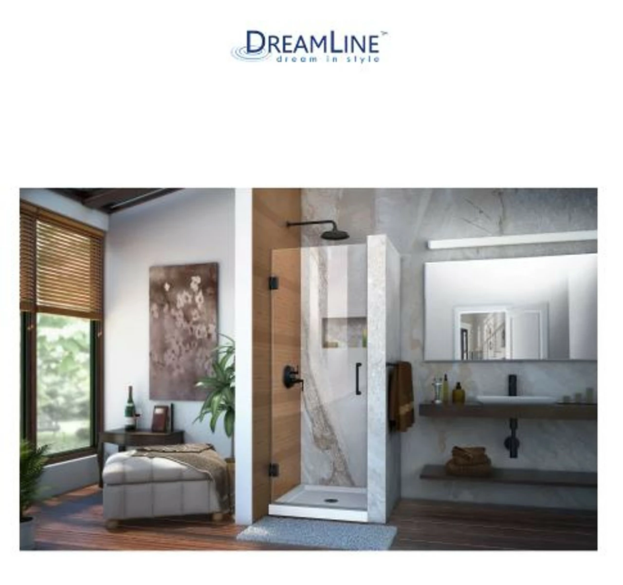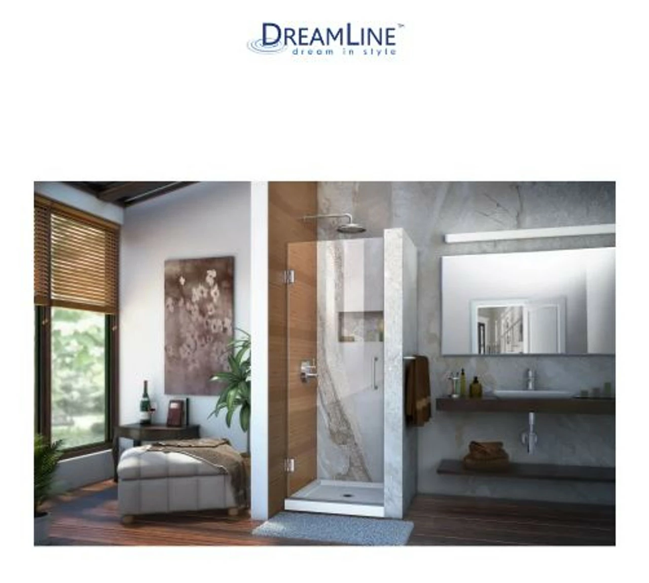 The DreamLine Unidoor is a frameless swing shower door designed in step with modern market trends. The elegant design and an incredible range of sizes are combined in the Unidoor for the look of custom glass at an unparalleled value. DreamLine exclusive ClearMax water repellant and stain resistant glass coating adds superior protection from stains and is nearly maintenance-free. With clean lines, modern accents and an upscale look, the Unidoor collection adds timeless style to any bathroom space.