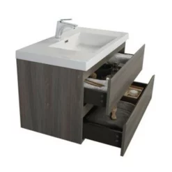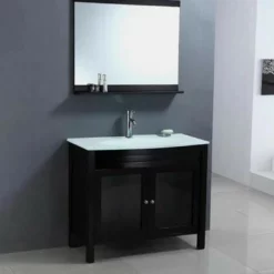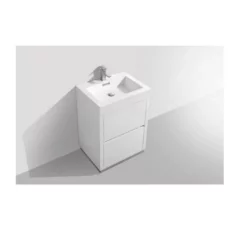 - Vanity cabinet may be hung on wall, or chrome finish metal legs may be used for the cabinet to sit on the floor