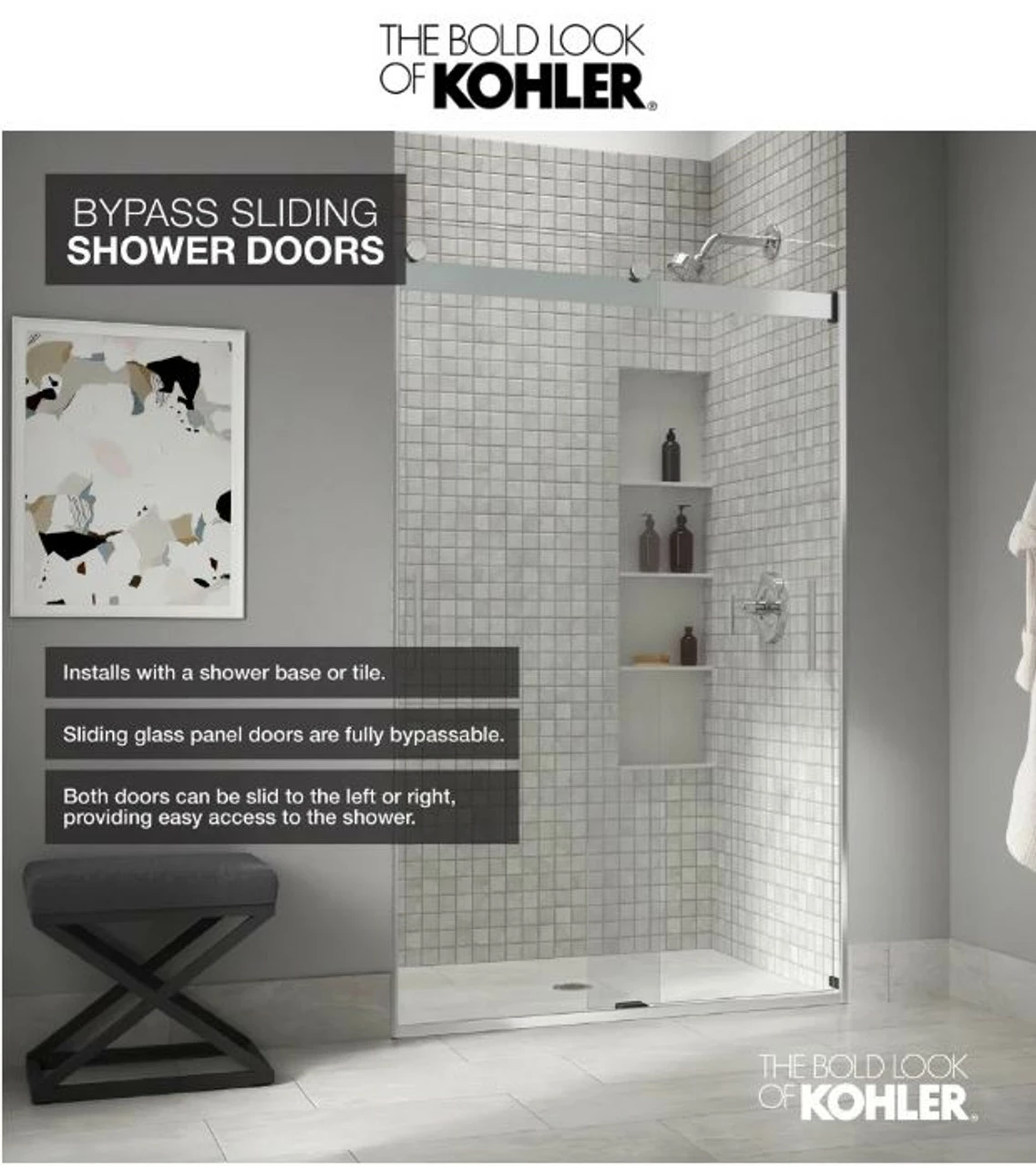 - Sliding shower door operation acts as a space saver for smaller bathrooms