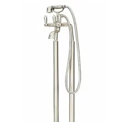 - Floor mounted / freestanding tub filler – faucet mounts to the floor extending up to the tub fixture
