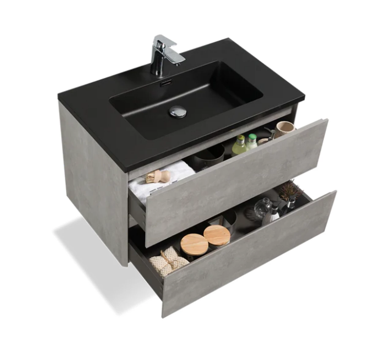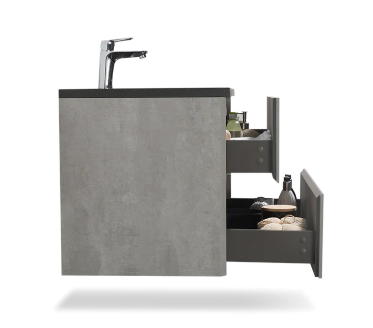 If you’re looking for a stylish bathroom cabinet that could provide you the ease of use and the quality of life, TONA Edi wall mounted single bathroom vanity with black quartz integrated top and sink is your choice. This modern design of vanity has a high-end black quartz integrated sink. With the patented design of drainage, the cabinet has plenty of storage space for all of your washing items. You will also reveal a lot of amazing details in the design.