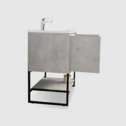 This vanity’s design makes it perfect for any bathroom. It is made from solid wood with a gorgeous quartz top along with an undermount square white ceramic sink. It comes in an espresso, gray or white finish which have been coated to prevent peeling and fading, ensuring long lasting durability. With a cabinet and soft close drawers with ample storage space and adorned with brilliant silver handles, this luxury design vanity will surely brighten up your bathroom.