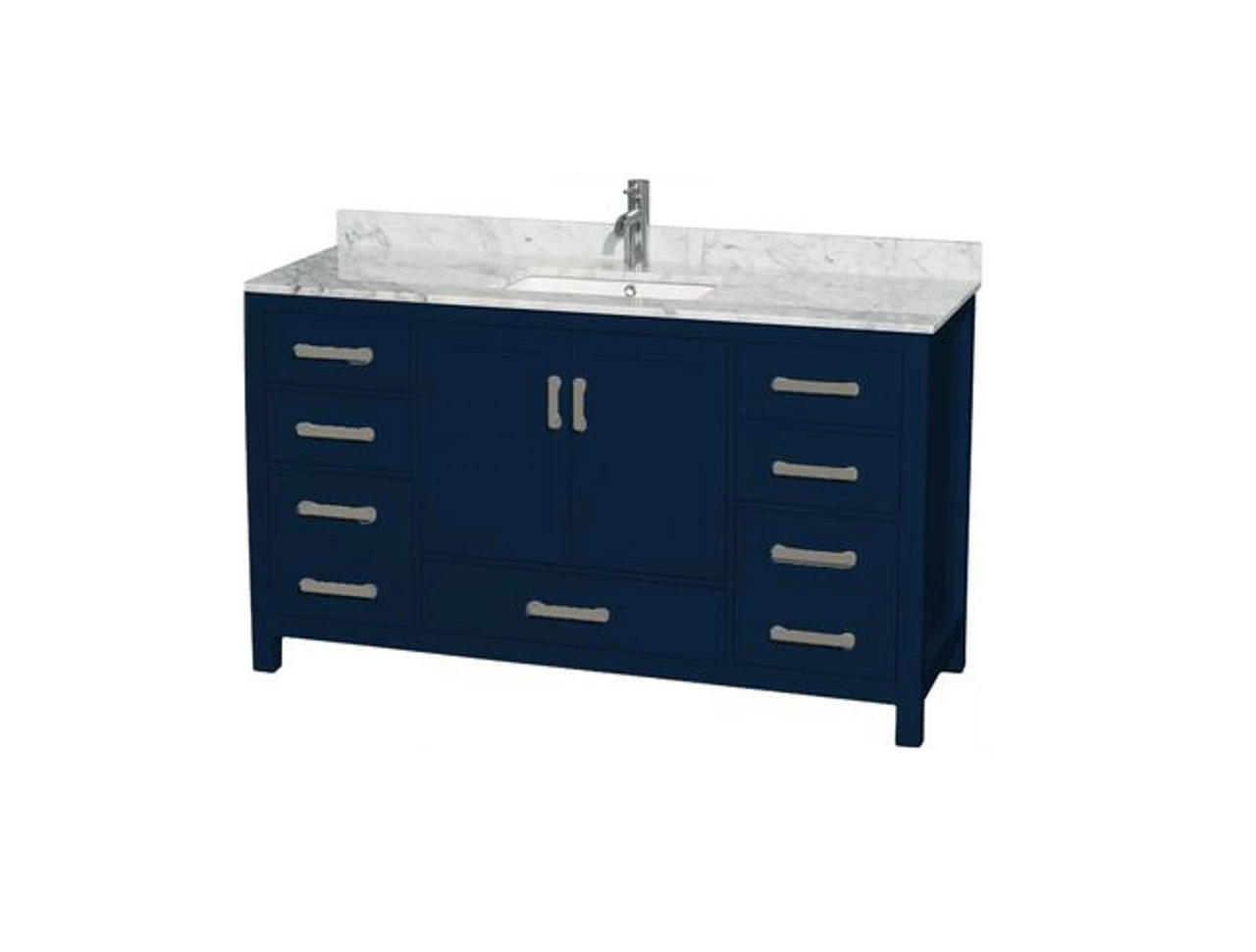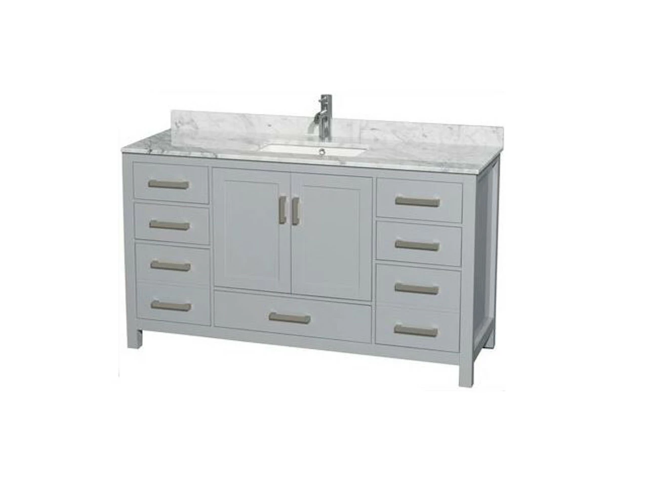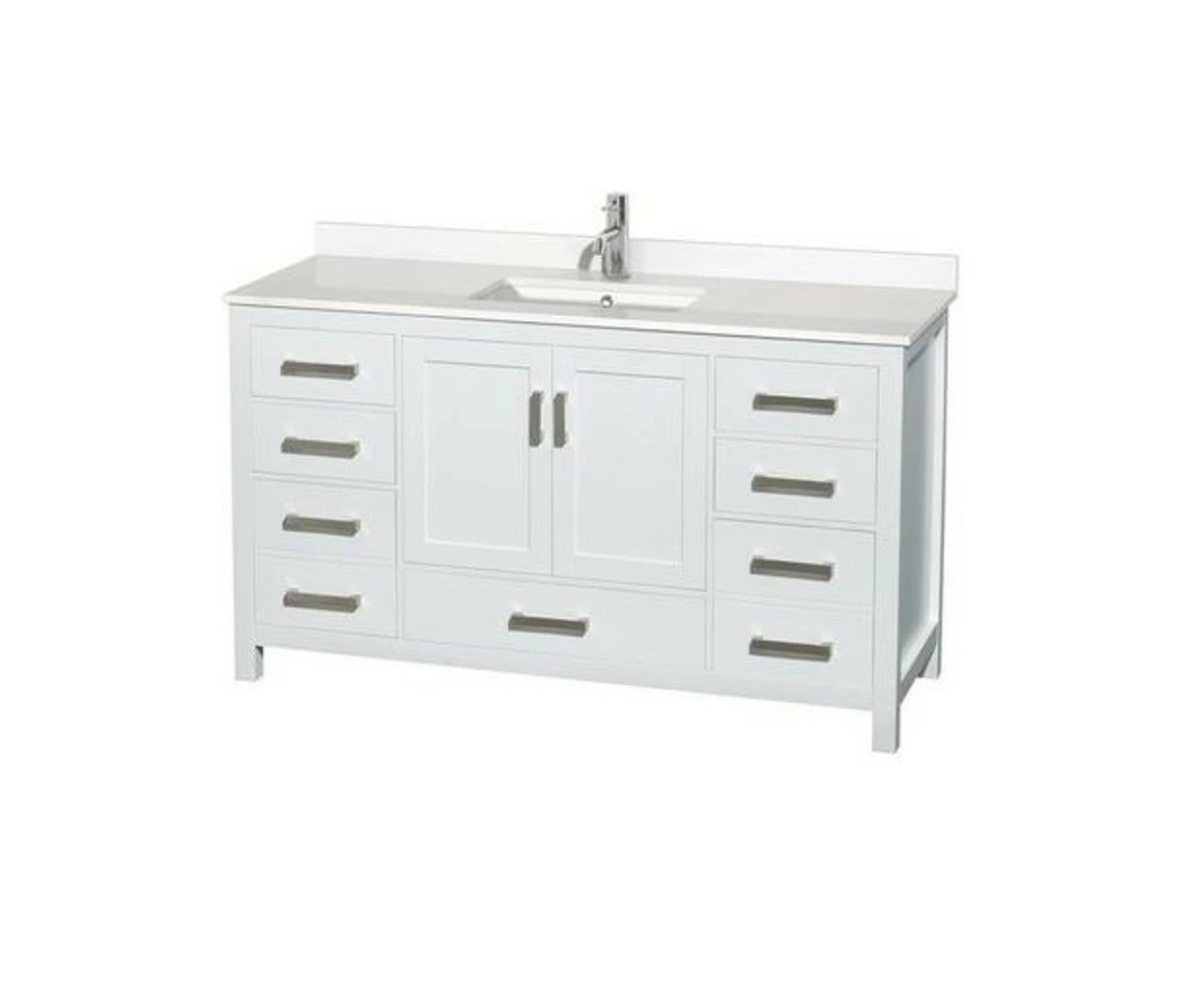 This vanity’s design makes it perfect for any bathroom. It is made from solid wood with a gorgeous quartz top along with an undermount square white ceramic sink. It comes in an espresso, gray or white finish which have been coated to prevent peeling and fading, ensuring long lasting durability. With a cabinet and soft close drawers with ample storage space and adorned with brilliant silver handles, this luxury design vanity will surely brighten up your bathroom.