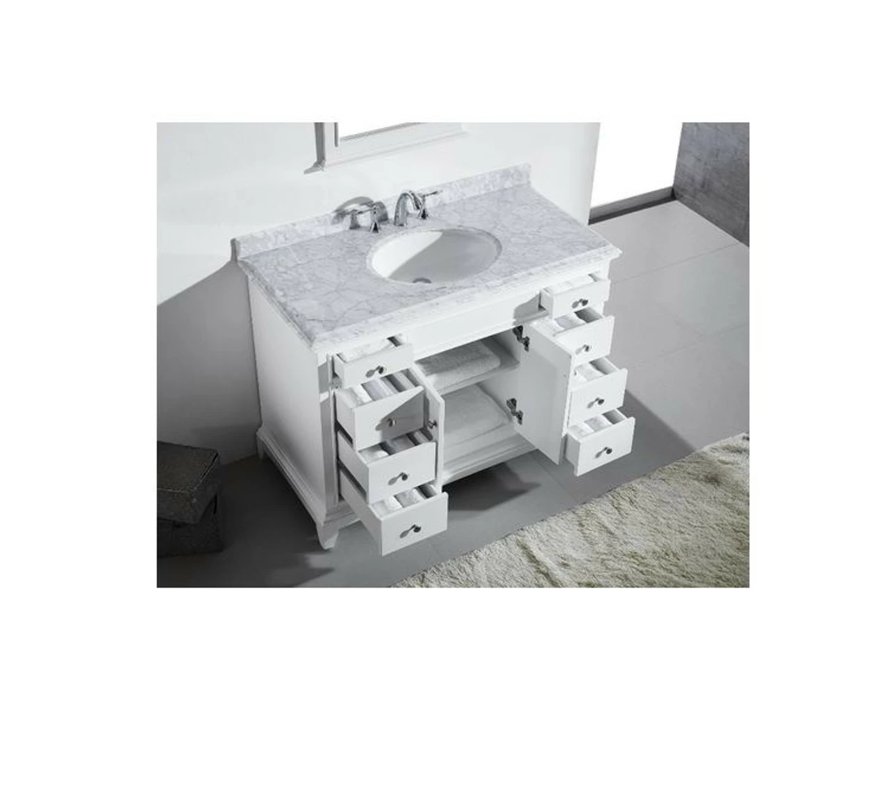 Give your bathroom that classic charm with this wondrous bathroom vanity. It features slow closing drawers and cabinets and a quartz top with a ceramic sink with overflow. With a top-coated finish to prevent peeling and fading. Made from solid wood, this vanity is so reliably durable that you are sure to have this beautiful set for years.