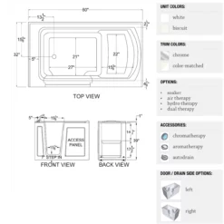 This stunning freestanding bathtub has a striking design that will make you the envy of all your friends. It is part of the serenity collection and is a rectangular shaped bath with a white finish. This white color is carried throughout the plastic of the tub and isn’t simply painted on at the end, ensuring that you will have a high quality tub that won’t show any scratches or blemishes as it becomes more used.
