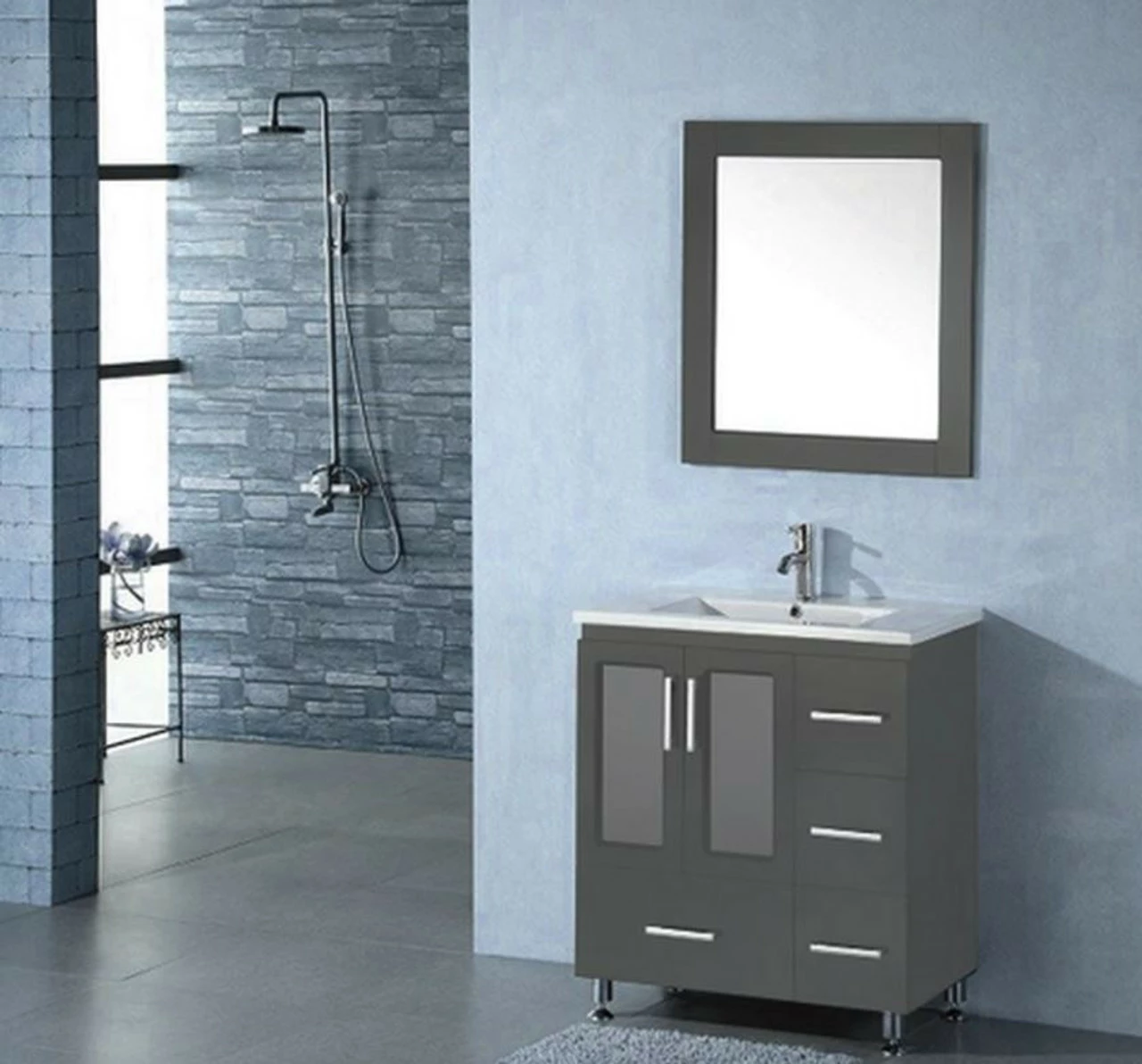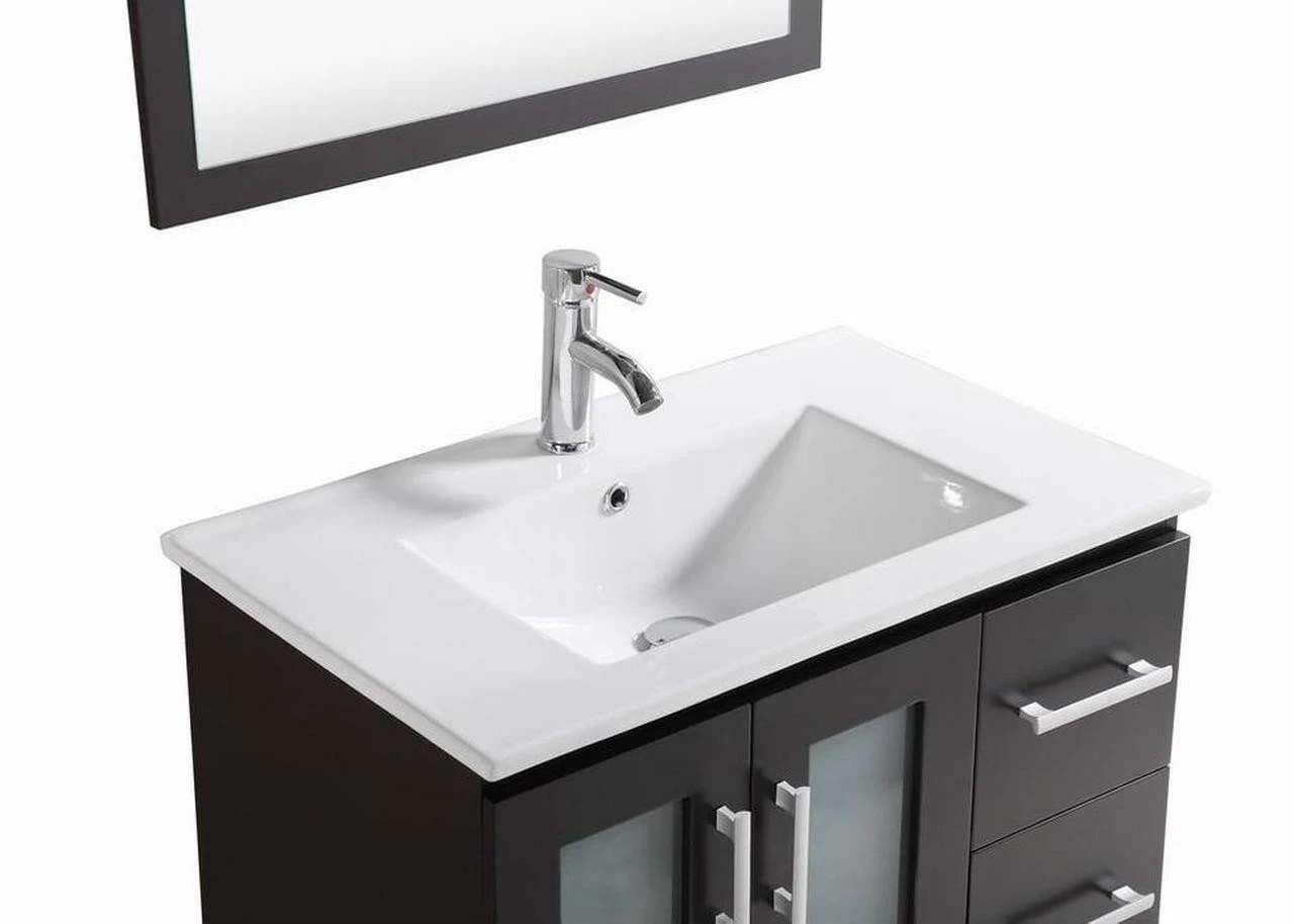 The Royal Doral 30″ Espresso Bathroom Vanity is an elegantly crafted piece with modern appeal. It comes with soft closing drawers and glass cabinet, made from solid wood. A ceramic top with square sink and overflow. Coated in a protective finish to prevent peeling. Think Doral for a durable and beautiful vanity.