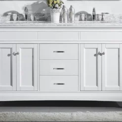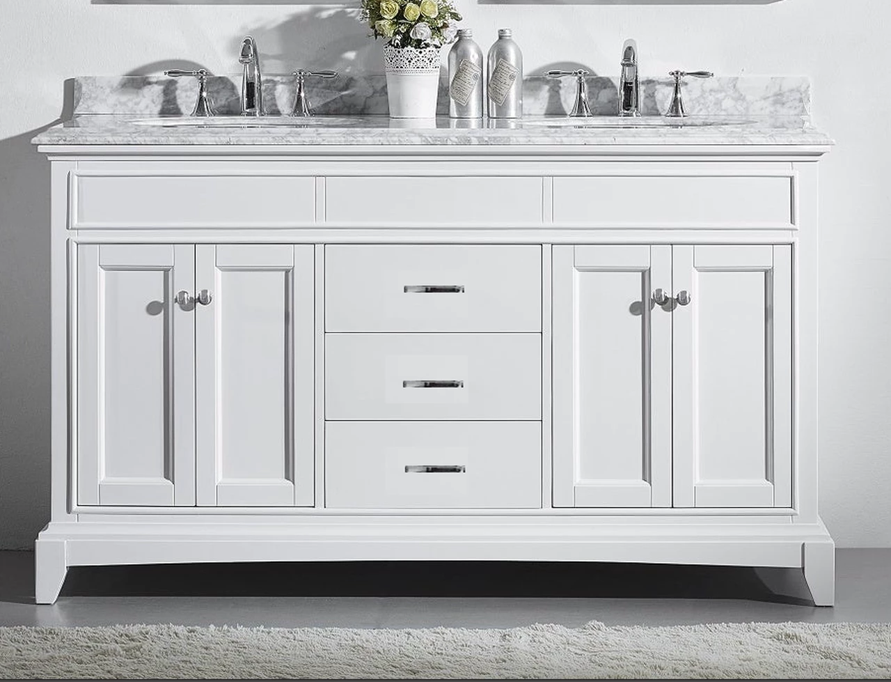 The Glades 60” Double Sink White Bathroom Vanity is elegance made from solid wood. It comes with a quartz top with two undermount sinks. Coated in a moisture resistant finish and with soft close drawers and cabinets so beautifully designed to shine in any bathroom.
