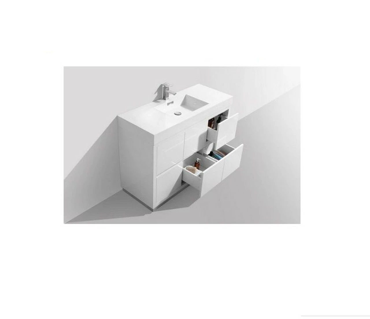 This vanity’s design makes it perfect for many bathrooms. It is made from solid wood with a gorgeous top along with an undermount square white ceramic sink. It has been coated to prevent peeling and fading, ensuring long lasting durability. This vanity will surely brighten up your bathroom.