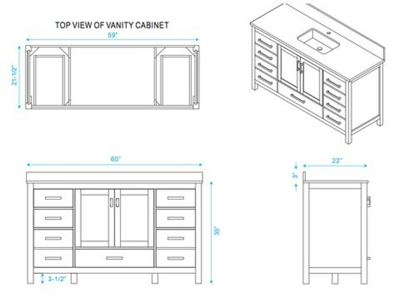 Vanity does not include the mirror, faucet, pop-up drain, back-splash or side-splash.