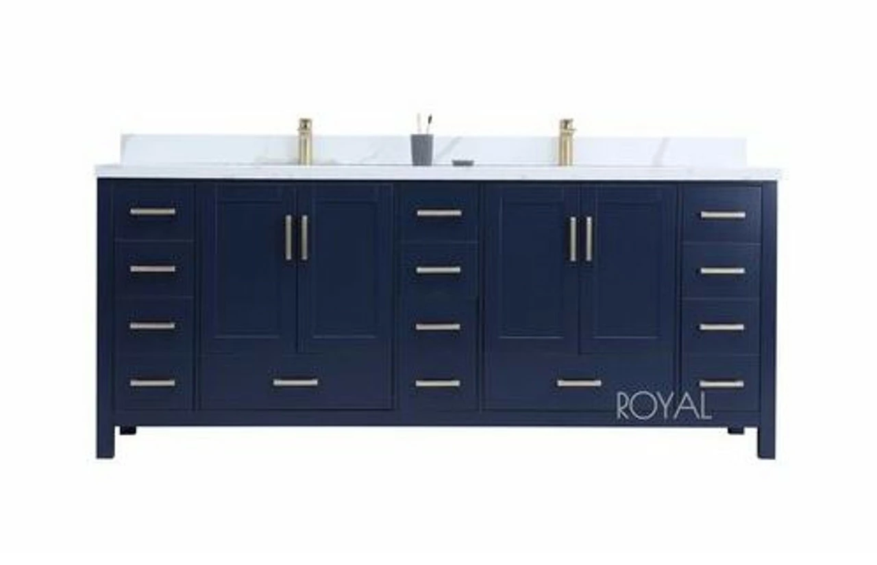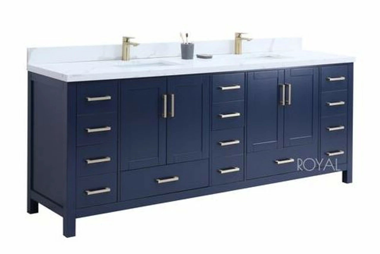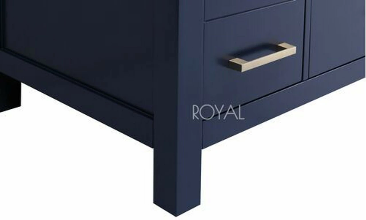 The Hollywood Collection vanity in navy blue from Royal provides a beautiful, contemporary style to any bathroom. with sleek, clean lines and a cool, neutral finish, this vanity’s beauty is only matched by its seamless functionality. The cabinet doors and drawers feature soft-close hinges and slides to increase safety and ensure you never have to hear a slamming cabinet again. With solid birch wood construction, this piece is as durable as it is stunning. The Hollywood Collection vanity also comes in different sizes to fit into any size bathroom and blends with any style. Every vanity also includes a matching stone countertop, square ceramic under mount sink, making it the one package you need to finish off your bathroom upgrade.
