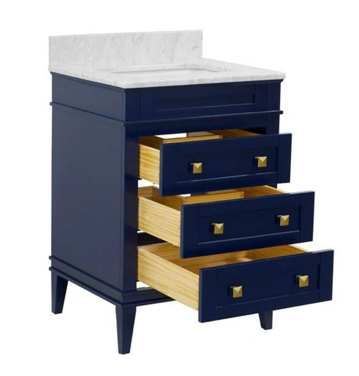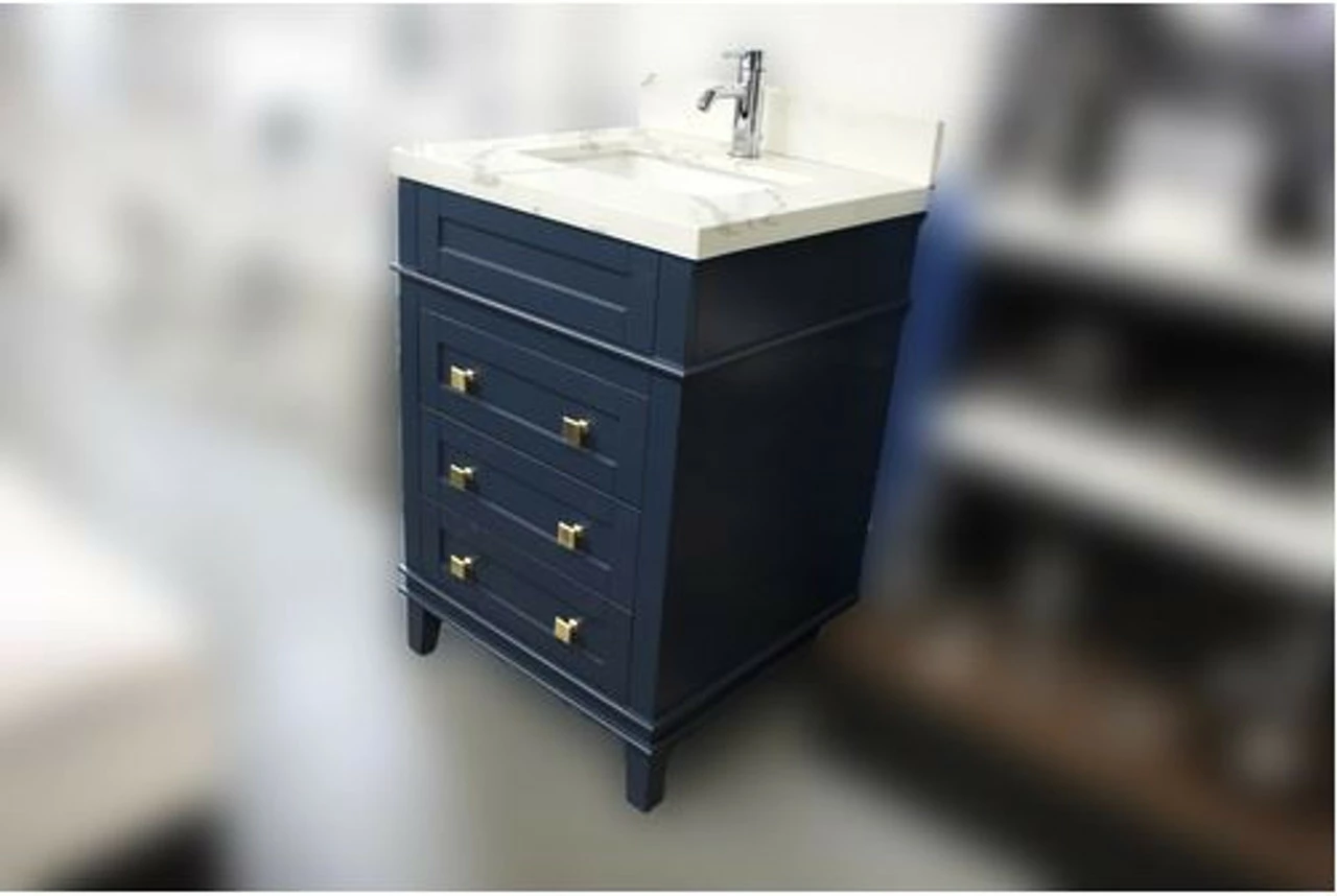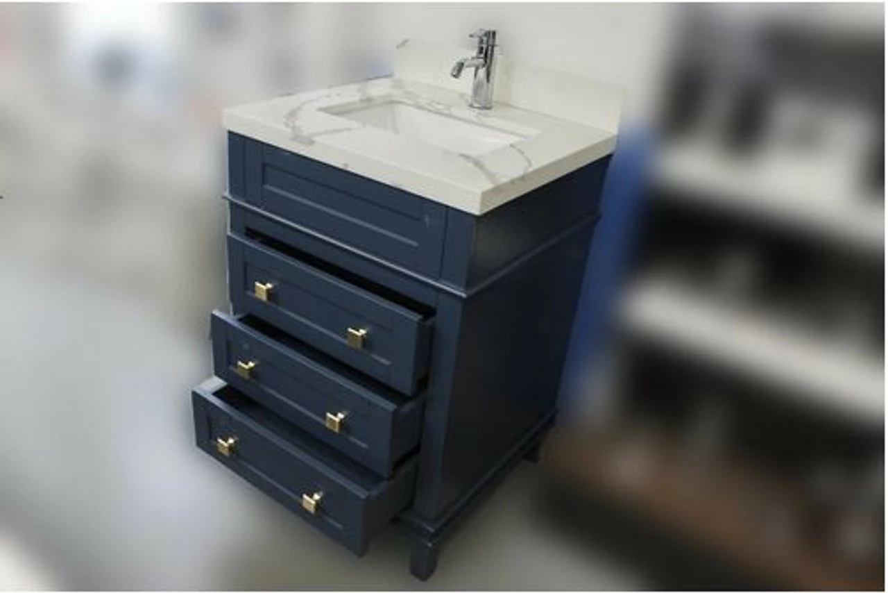 - Solid wood vanity with soft closing drawers and cabinets