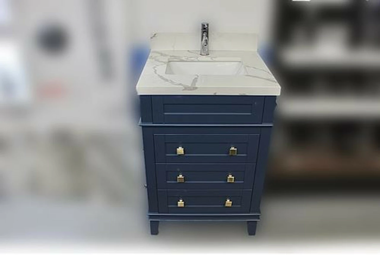 - Solid wood cabinet with stone top