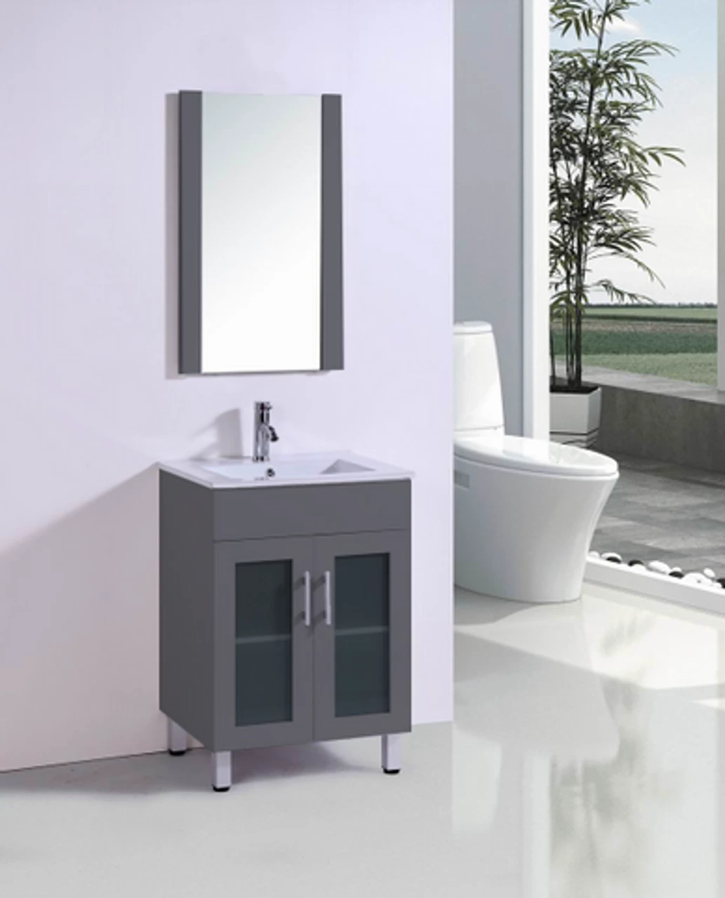 TheVegas 24″ Bathroom Vanity blends sleek with contemporary. It features soft closing glass cabinets and a ceramic white top with under mount sink and overflow. This vanity is coated to prevent peeling, making it durable for years to come.