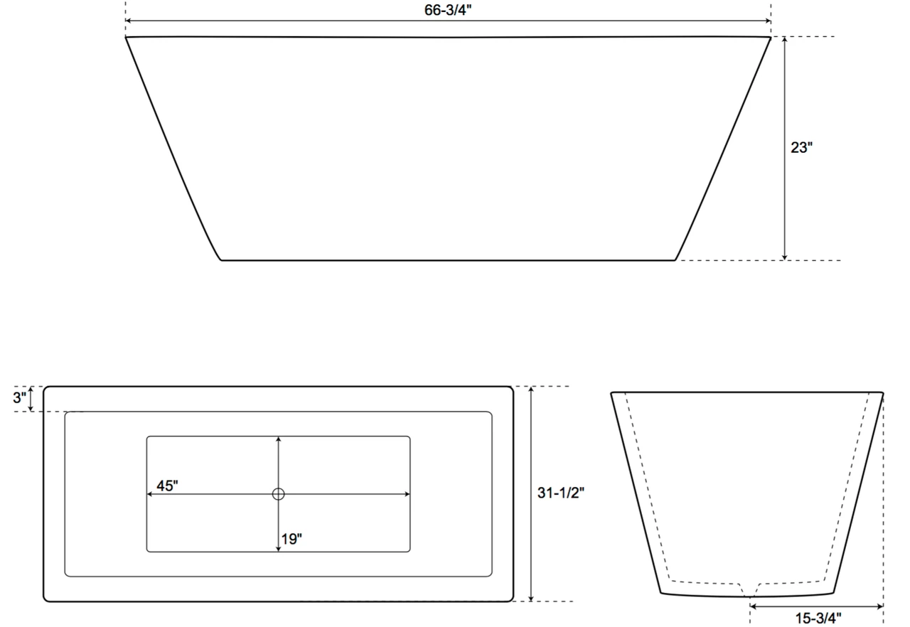 - 67″ W x29.5″ D x23.5″ H