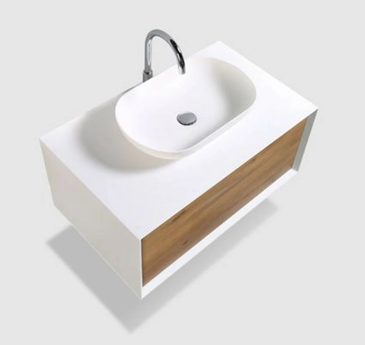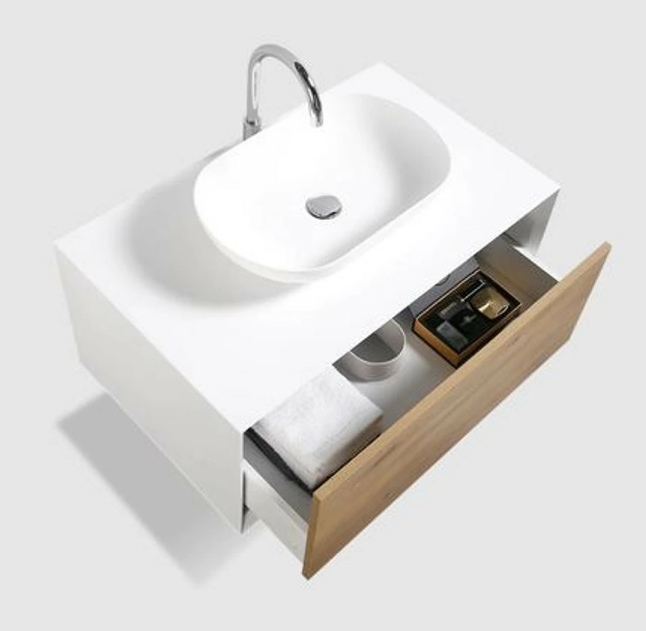 - 【VESSEL SINK】Lacquered MDF (Medium Density Fiberboard) wood board for the bathroom furniture. The oval sink has a curved shape and efficiently prevents splashing. The well-functioning sink (WITHOUT FAUCET & MIRROR) is easy to clean, scratch-resistant, and high-temperature resistant.