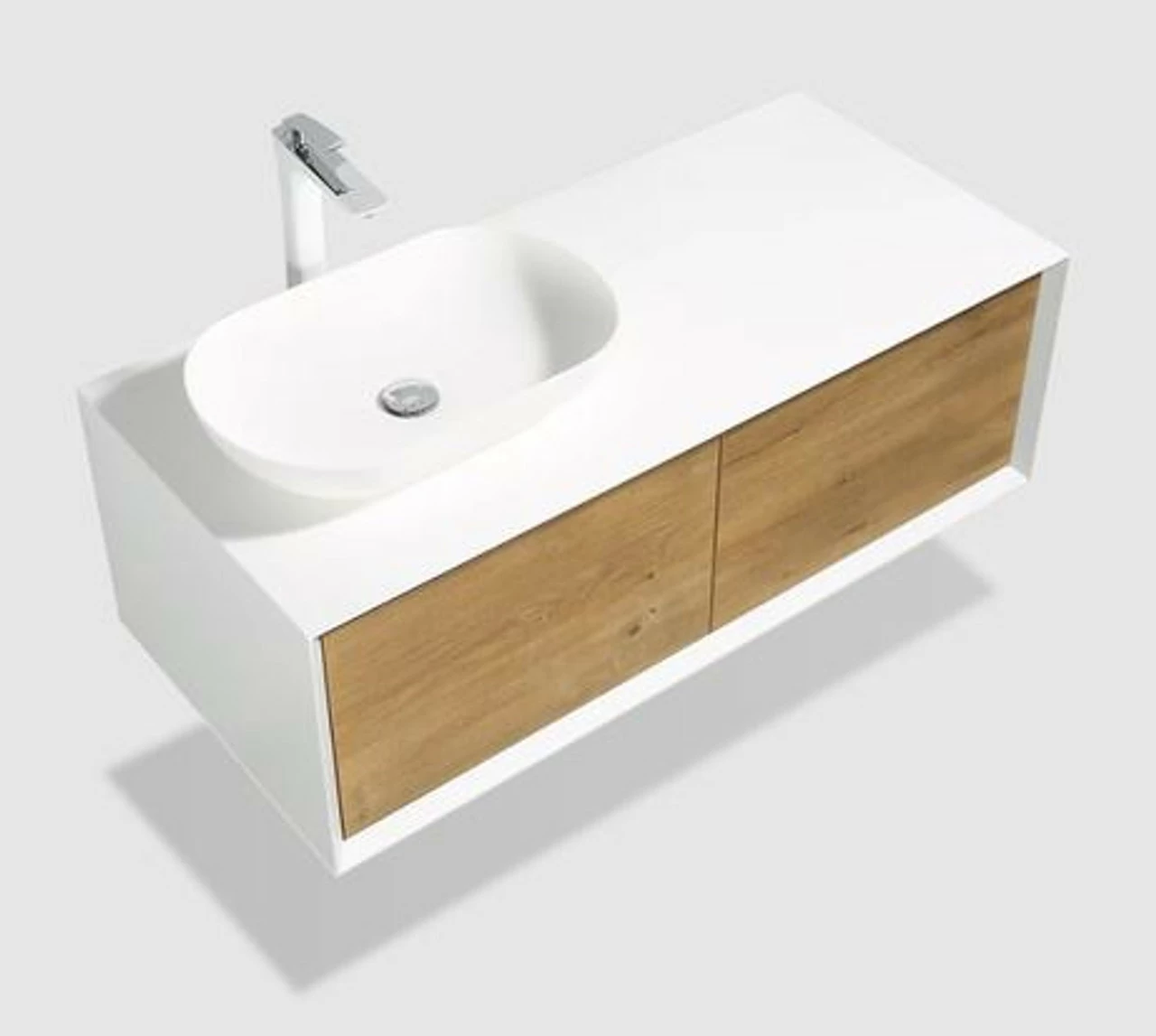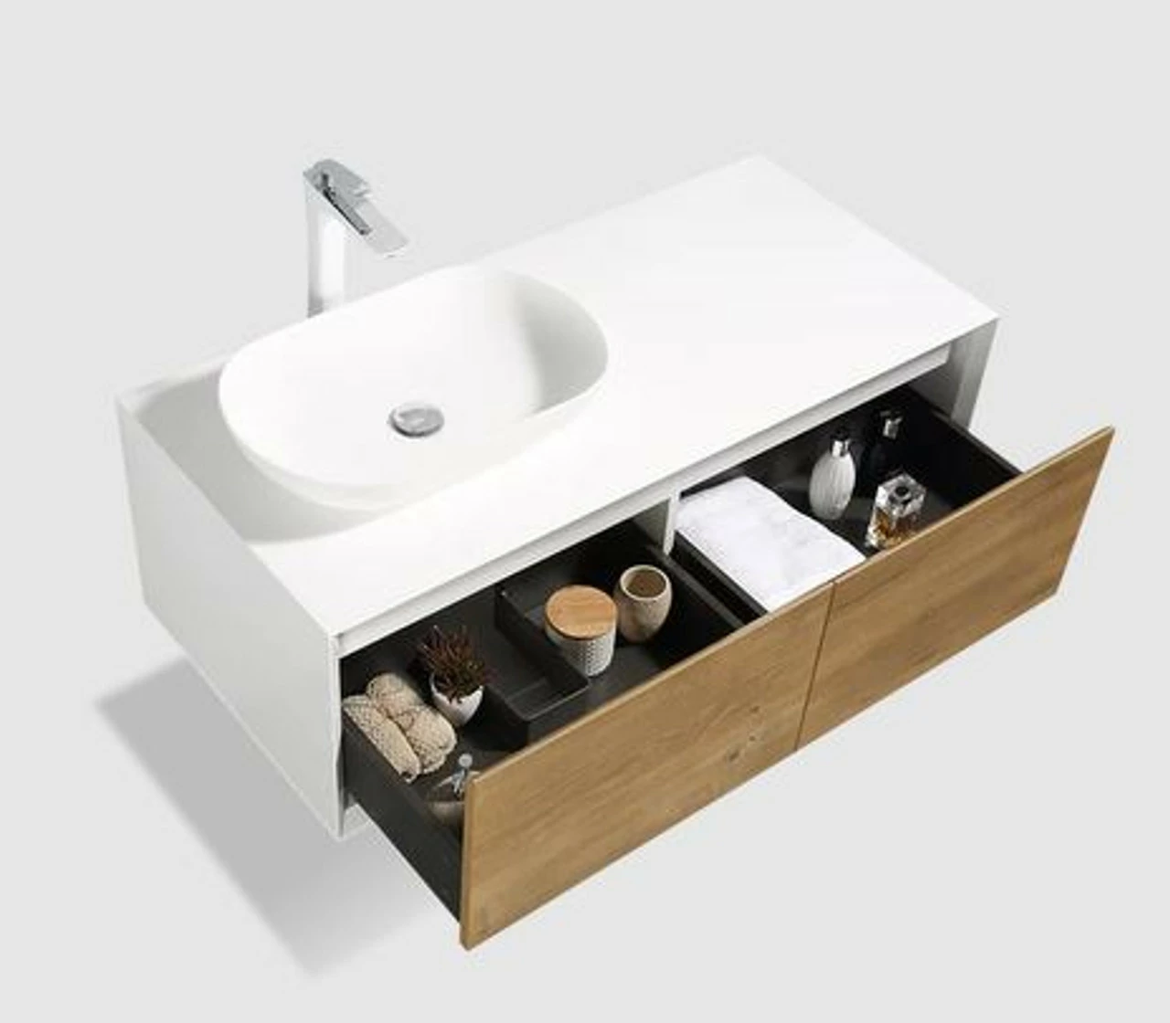 - 【VESSEL SINK】Lacquered MDF (Medium Density Fiberboard) wood board for the bathroom furniture. The oval sink has a curved shape and efficiently prevents splashing. The well-functioning sink (WITHOUT FAUCET & MIRROR) is easy to clean, scratch-resistant, and high-temperature resistant.