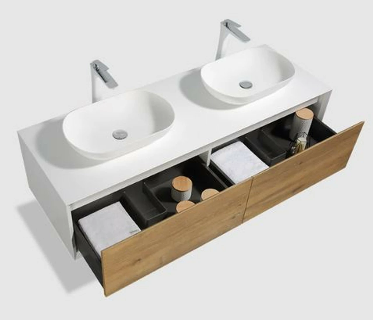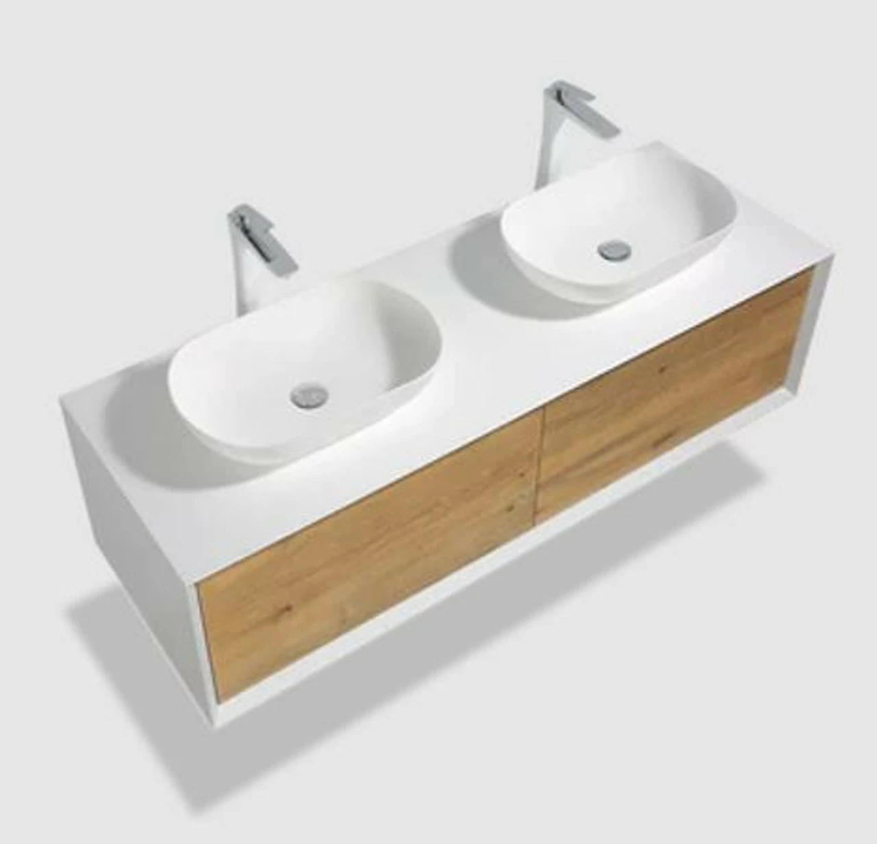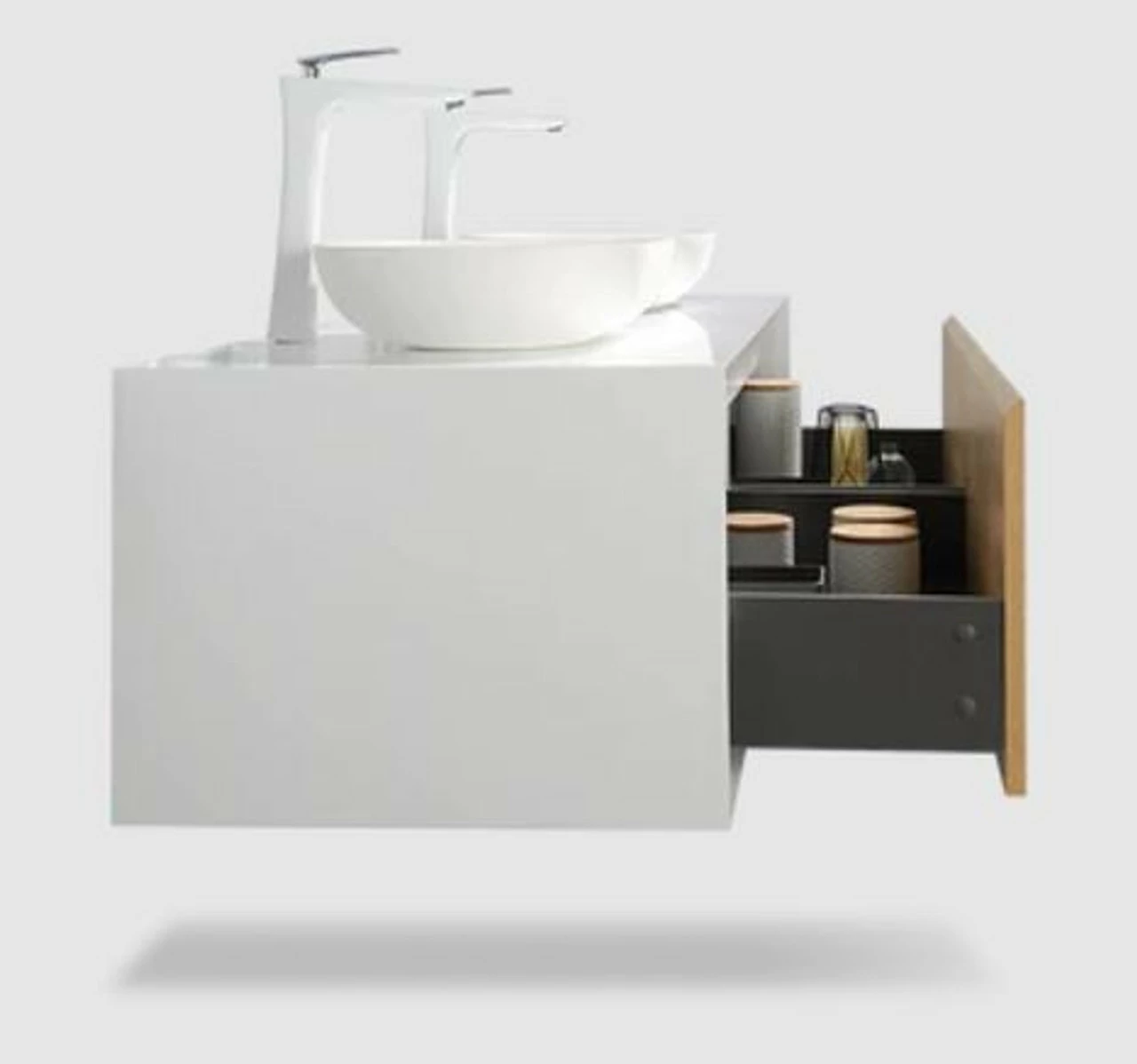 - 【VESSEL SINK】Lacquered MDF (Medium Density Fiberboard) wood board for the bathroom furniture. The oval sink has a curved shape and efficiently prevents splashing. The well-functioning sink (WITHOUT FAUCET & MIRROR) is easy to clean, scratch-resistant, and high-temperature resistant.