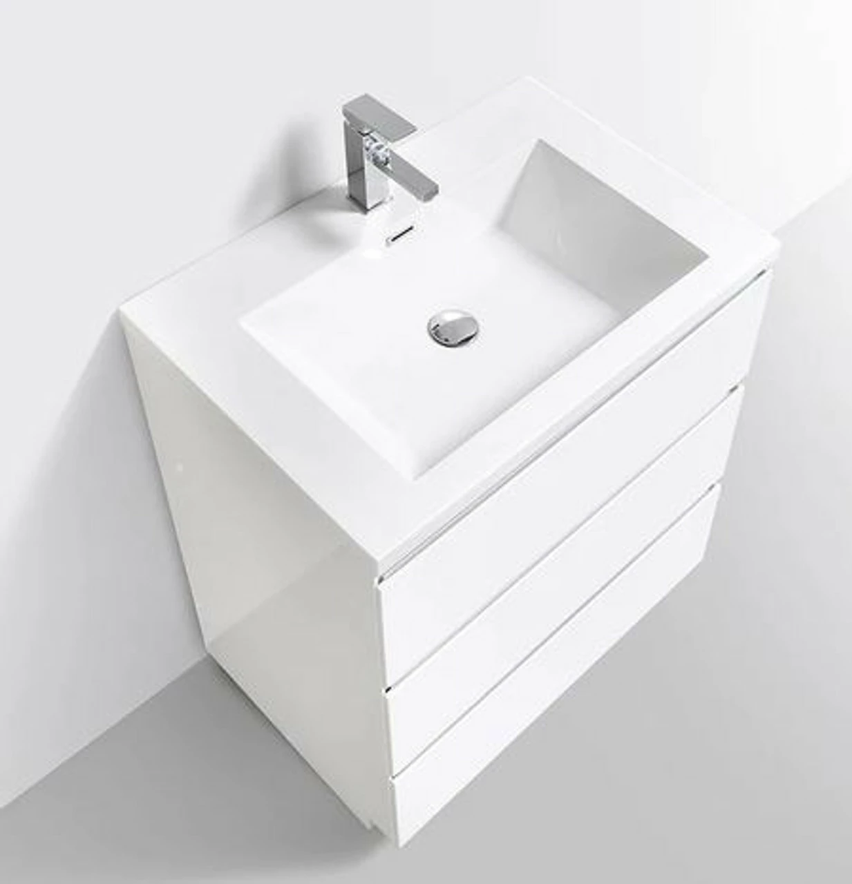 Freestanding Vanity Unit with White Artificial Stone Integrated Sink