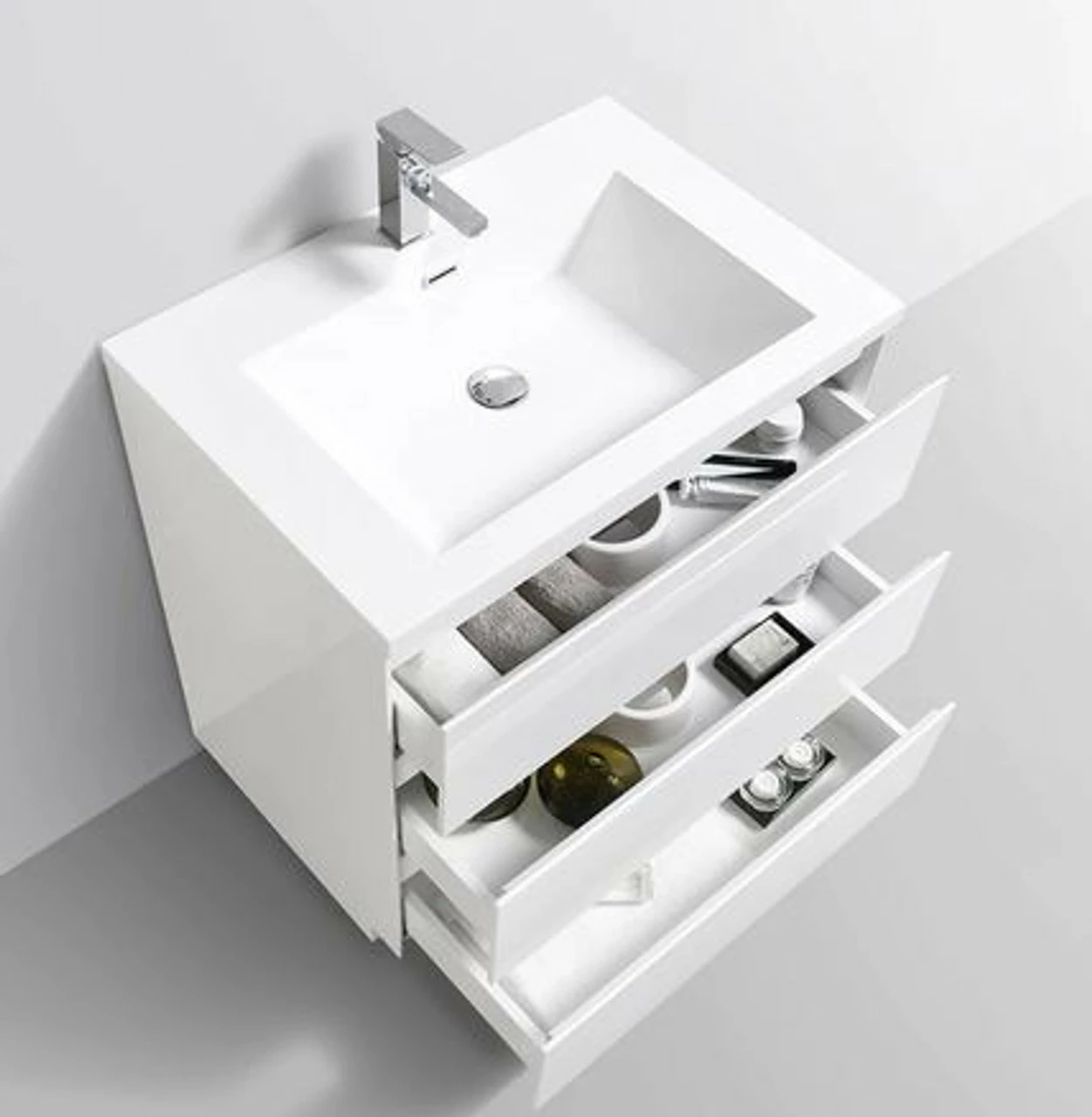 U-shaped drainage spacing design separates storage space and drainage hole beautifully and gives the floating bathroom vanity more storage space.