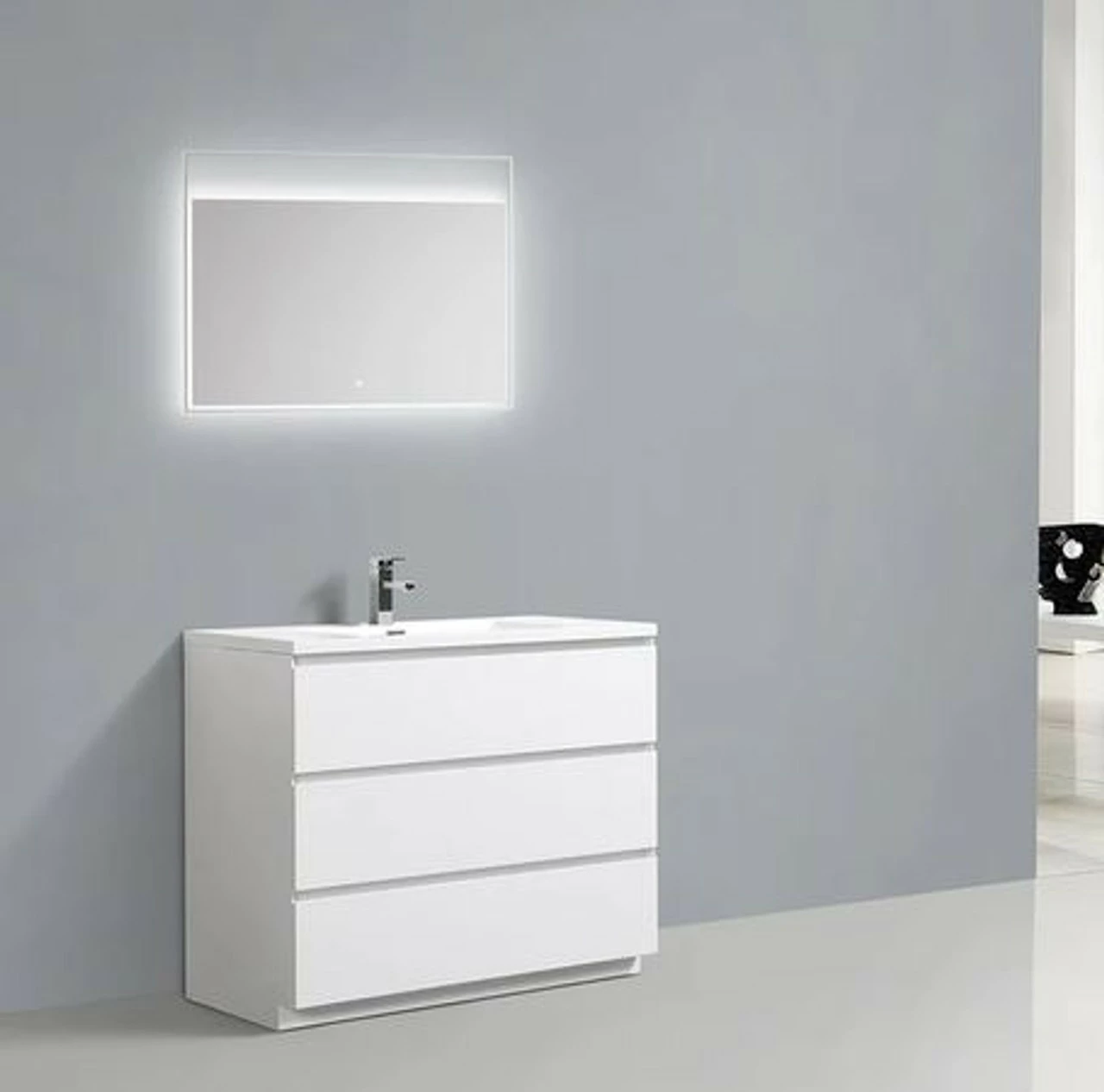Freestanding Vanity Unit with White Artificial Stone Integrated Sink