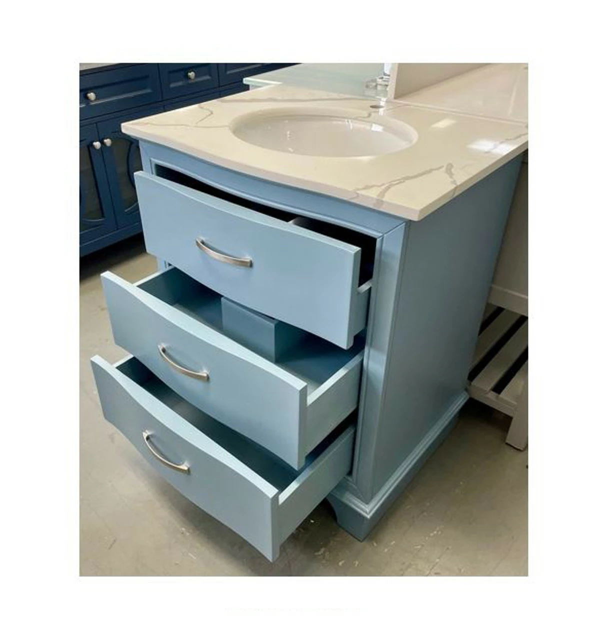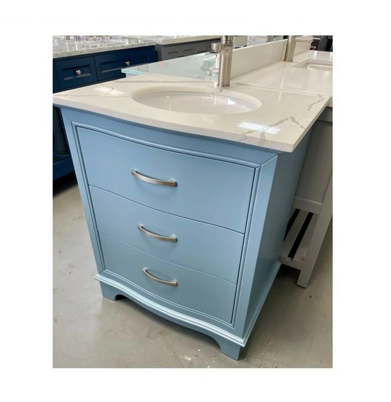 - Cabinet Colors Available in white and Dark Blue and Polaris Blue