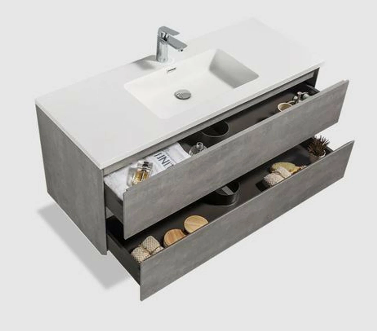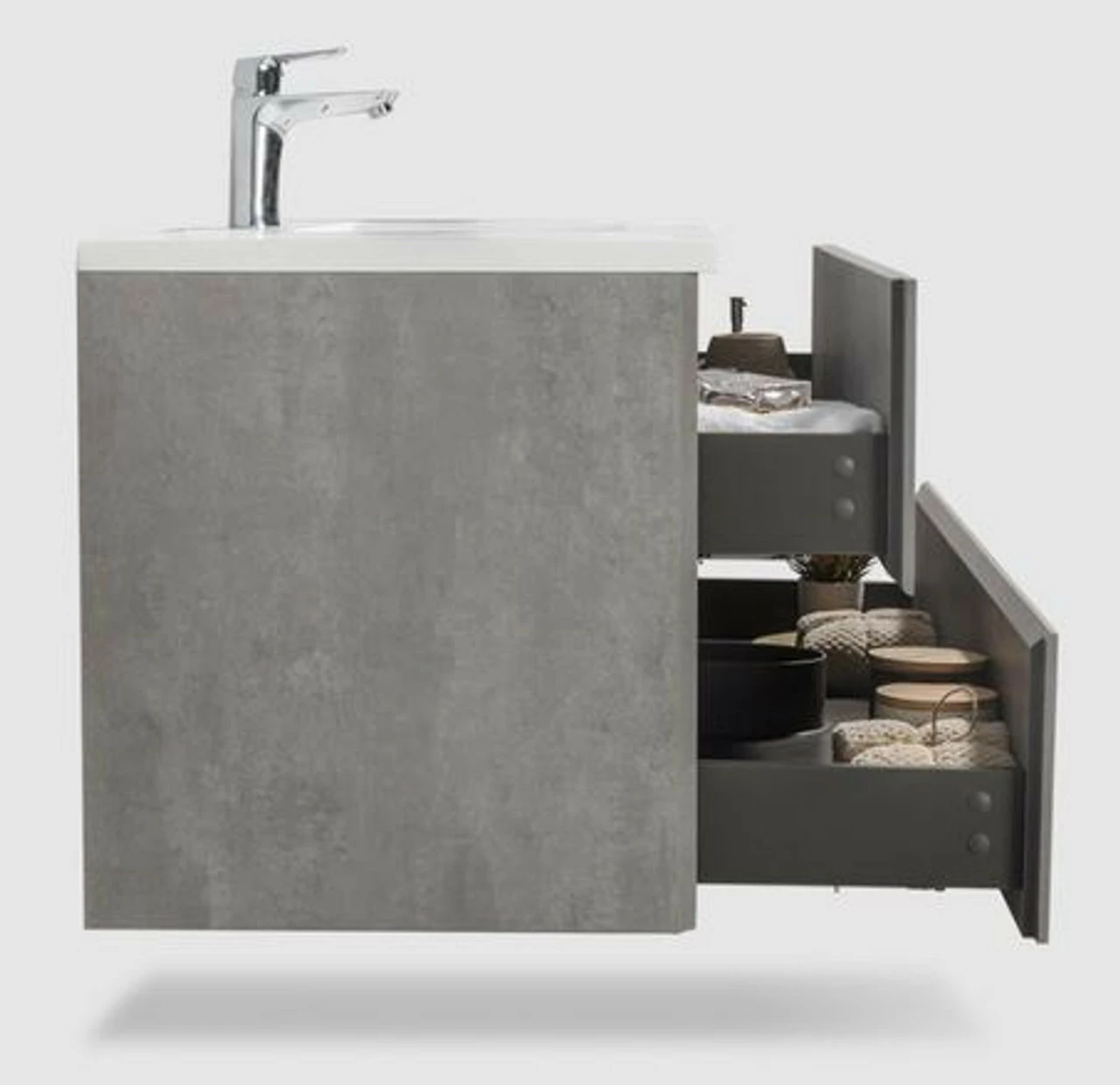 Wall Hung Vanity Unit with White Quartz Integrated Sink