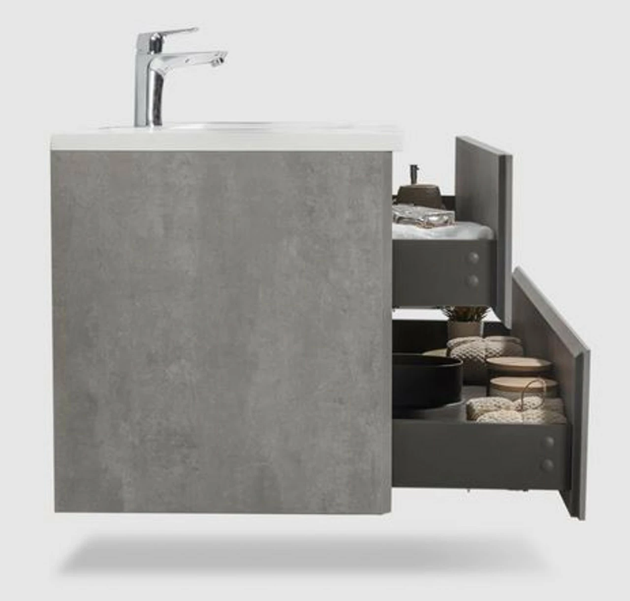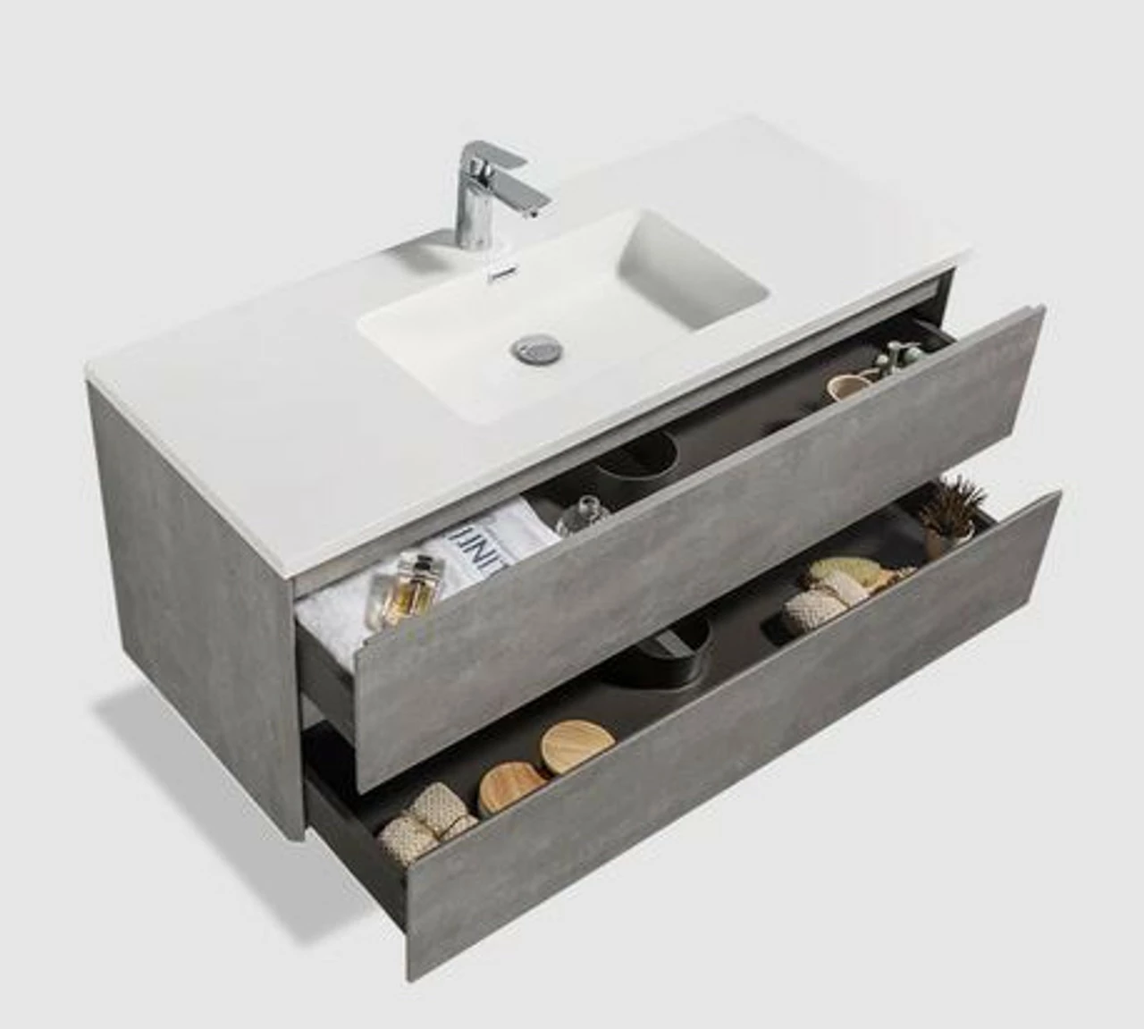 Wall Hung Vanity Unit with White Quartz Integrated Sink