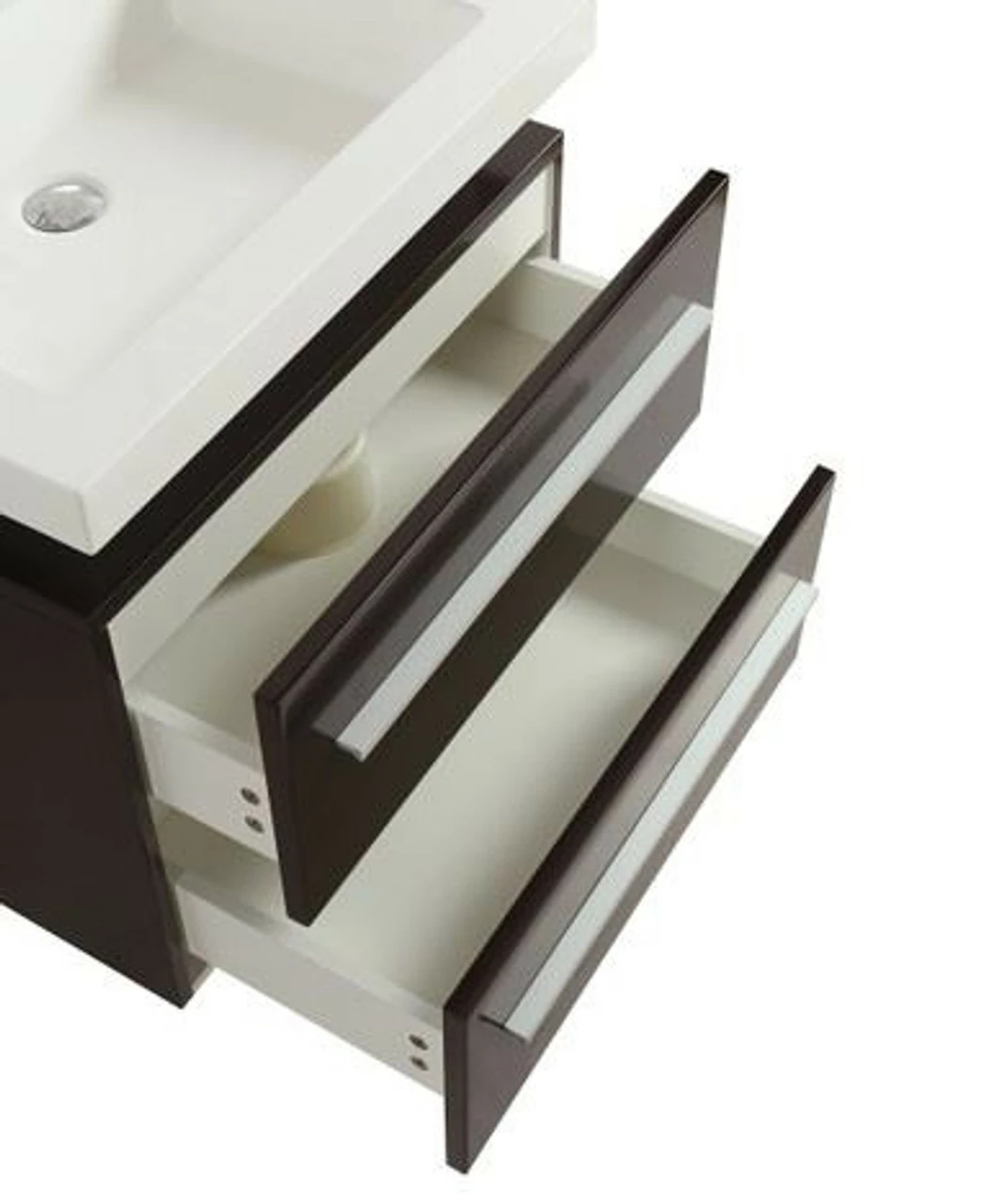 Lacquered white non-pierced sink cabinet with 2 drawers.