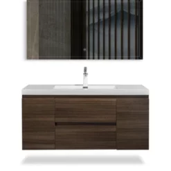 Bergamo-Floating Bathroom Vanity Wall Hung Vanity Unit With Faux Marble Integrated Top&Sink – 48 In