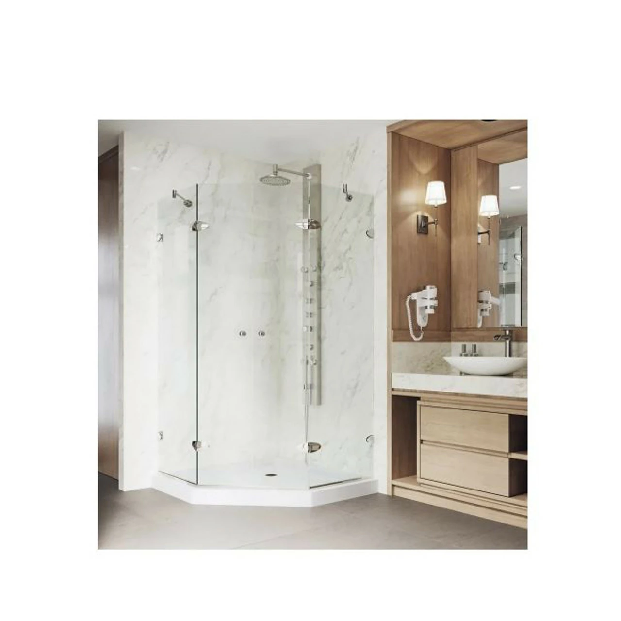 Vigo Gemini 76-3/4″ High x 47″ Wide x 47-5/8″ Deep Hinged Frameless Shower Enclosure with 3/8″ Glass – Low Profile Shower Pan Included